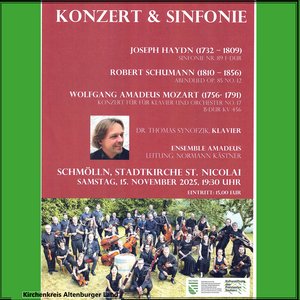 Am Samstag, 15. November 2025, 19:30 Uhr, lädt die Stadtkirche St. Nicolai Schmölln zu einem klassisch-romantischen Orchesterabend mit dem Ensemble Amadeus ein. Solist: Dr. Thomas Synofzik (Klavier). Leitung: Normann Kästner. Eintritt: 15,00 €.