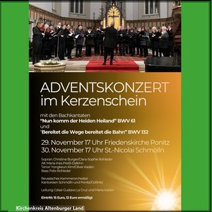 Veranstaltung: Adventsmusik im Kerzenschein mit den Kantoreien Ponitz/Gößnitz und Schmölln und Instrumentalisten musikalische Leitung: Maria Kalder und César Gustavo La Cruz in der Friedenskirche in Ponitz