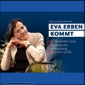 Am 27. November 2025 berichtet die Zeitzeugin Eva Erben in der Brüderkirche Altenburg aus ihrem Leben. 12:30–14:00 Uhr, empfohlen ab Klasse 8-